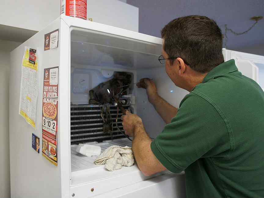 Повреждение испарителя зачастую происходит случайно. Можно нарушить при желании ускорить разморозку. Разрушение конденсатора – в основном это происходит из-за работы в сыром помещении или при повреждении. Единственным способом ремонта является закрепление навесного конденсатора.